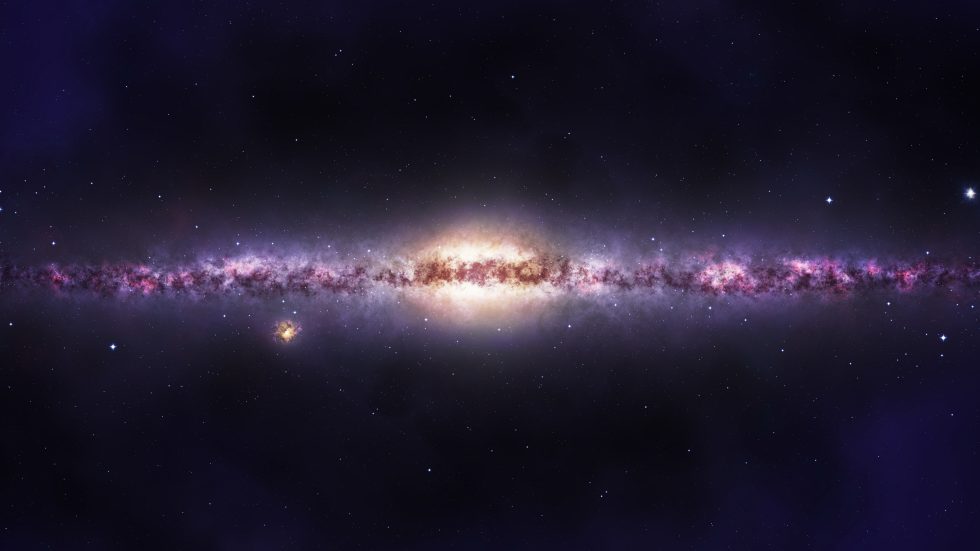 深邃宇宙中,银河系如一条璀璨光带横贯画面,点缀着星云与繁星,展现浩瀚宇宙的神秘与美丽。